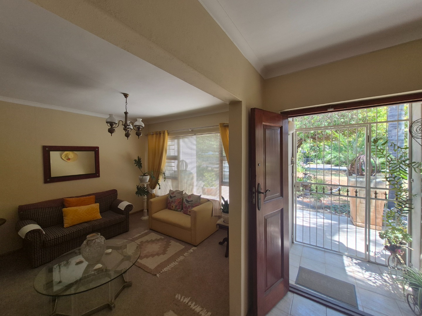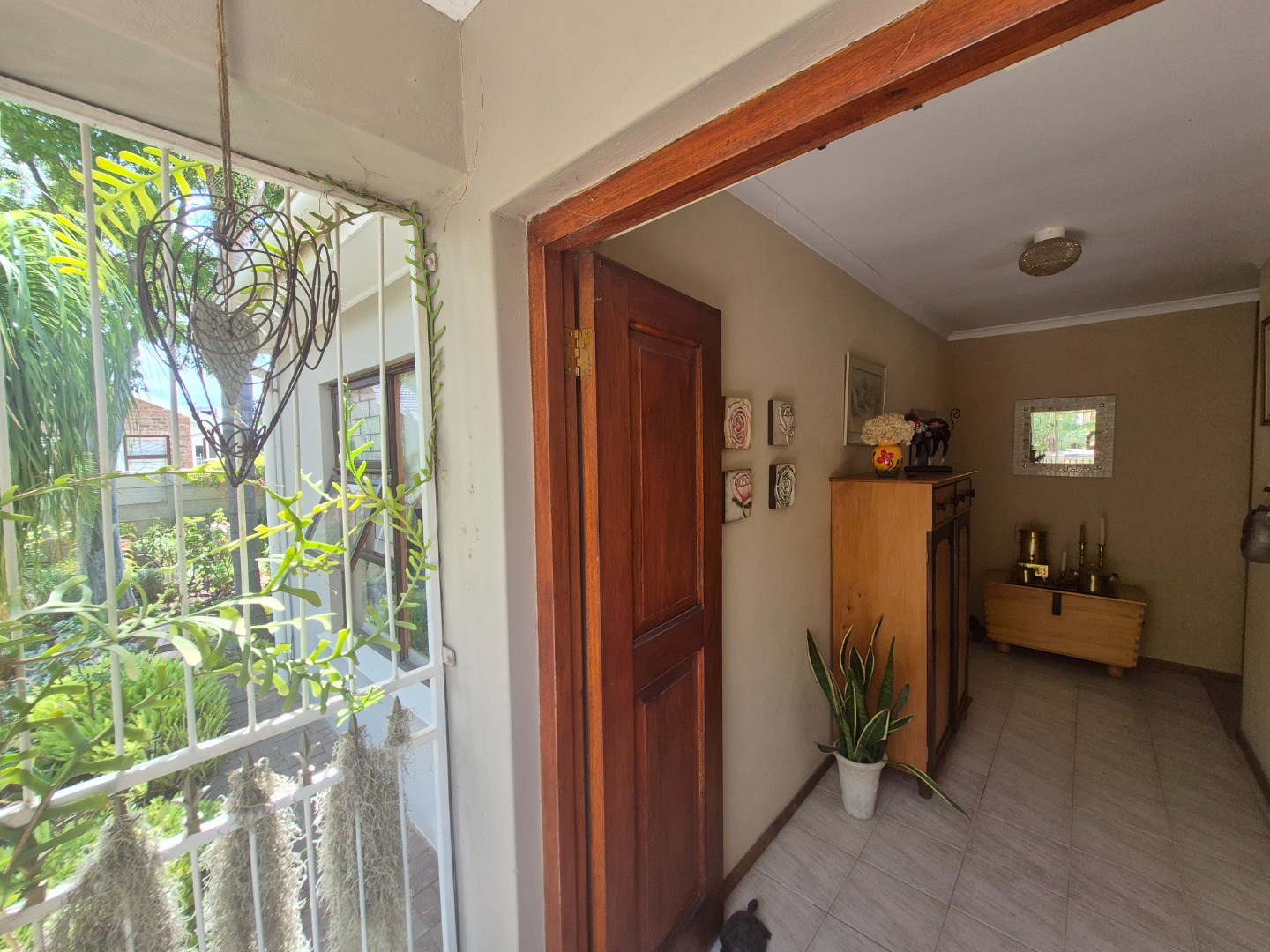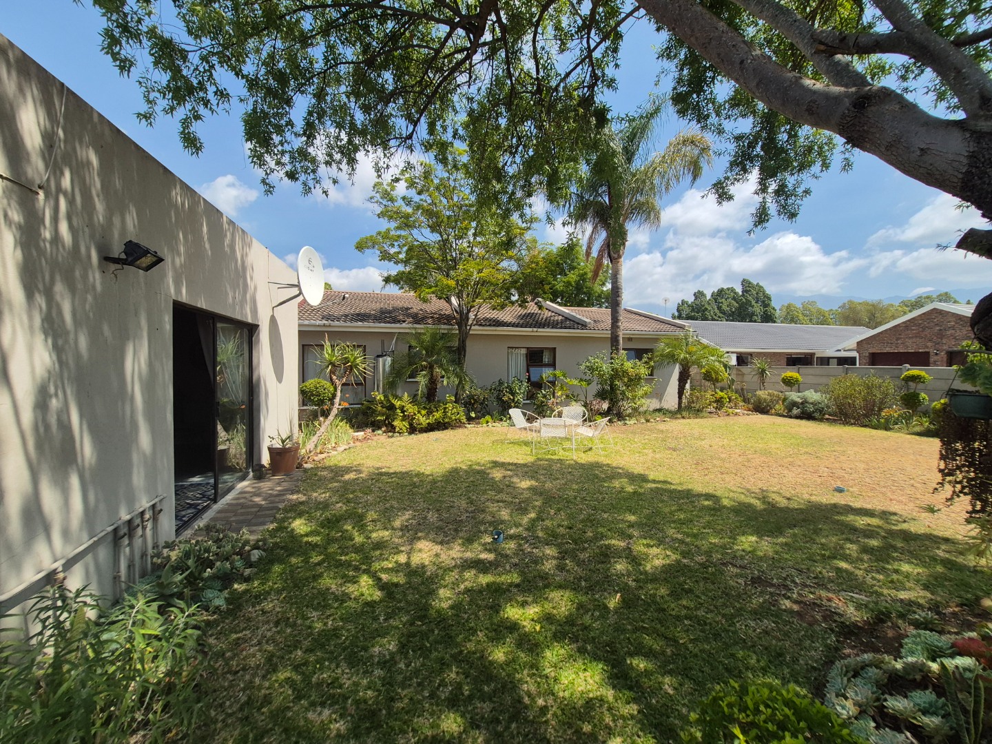 Outdoor living is well catered for with a private garden, creating a pleasant exterior space. The built-in braai is perfect for social gatherings and enjoying the South African climate. Parking is abundant, with a double garage and an additional four open parking spaces, accommodating multiple vehicles with ease.