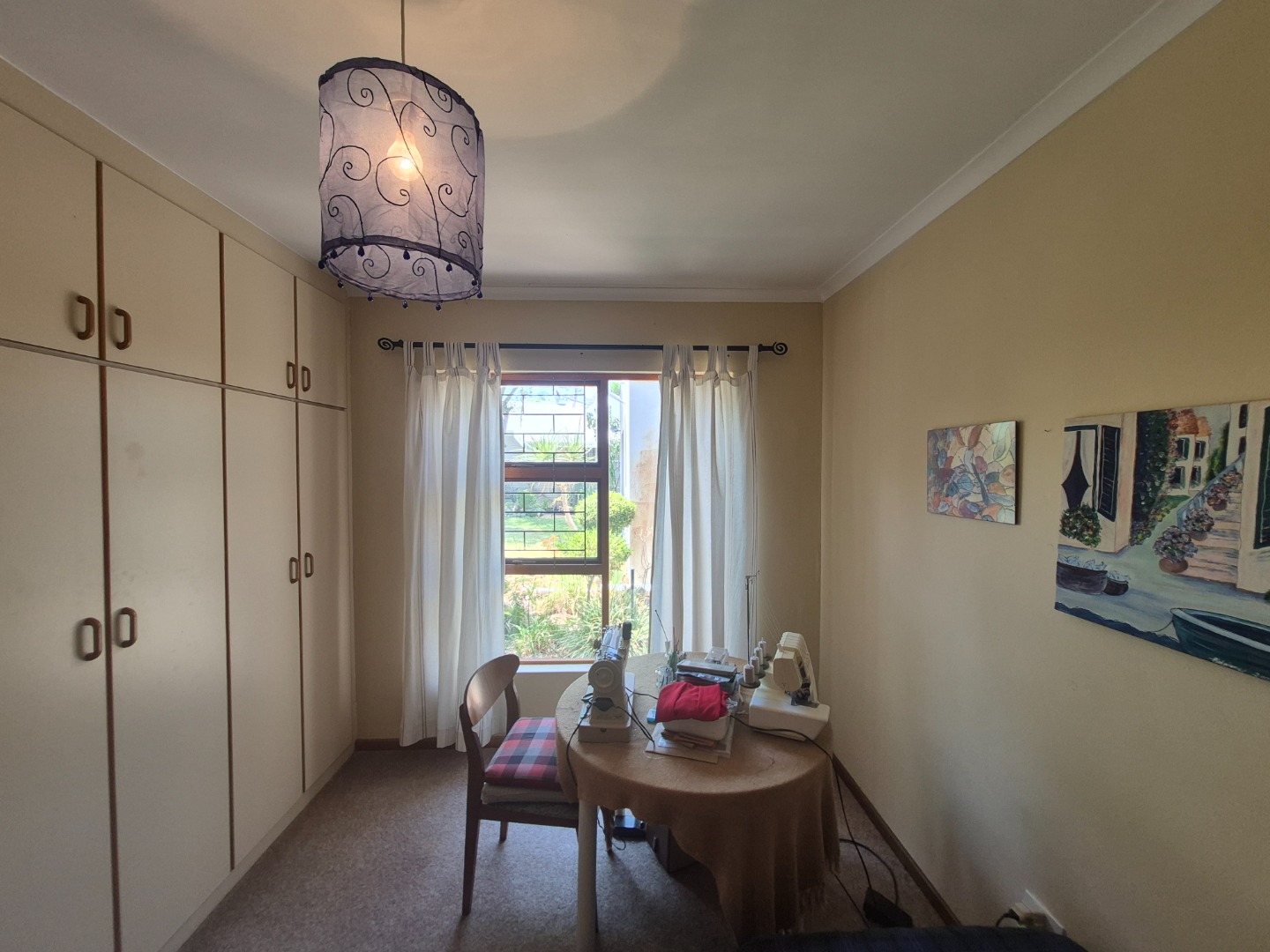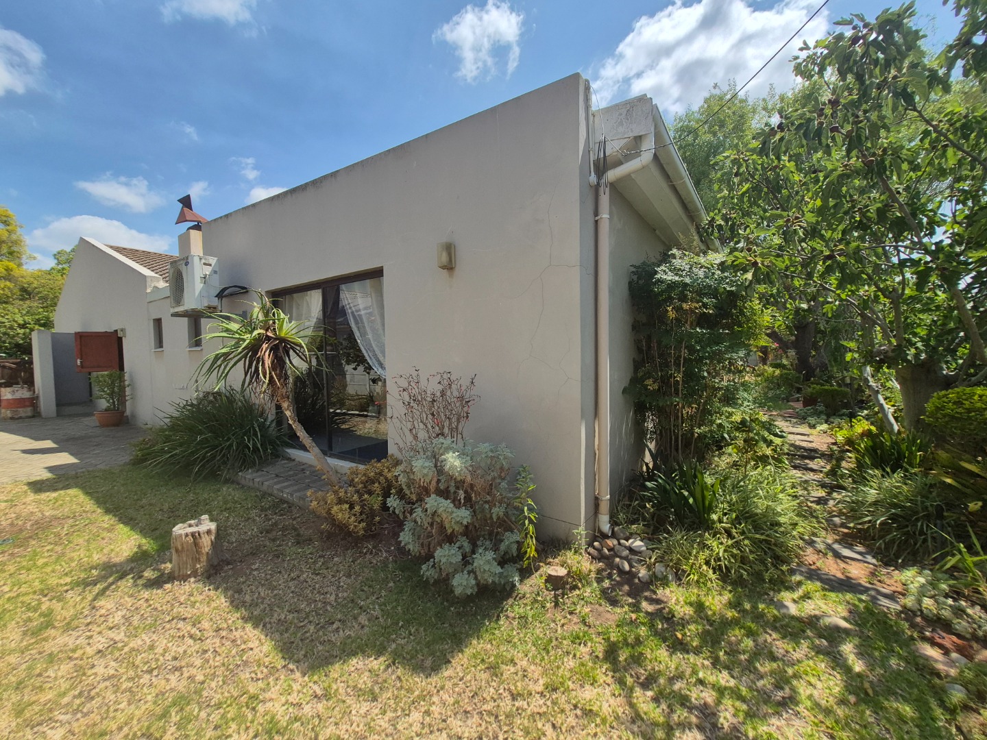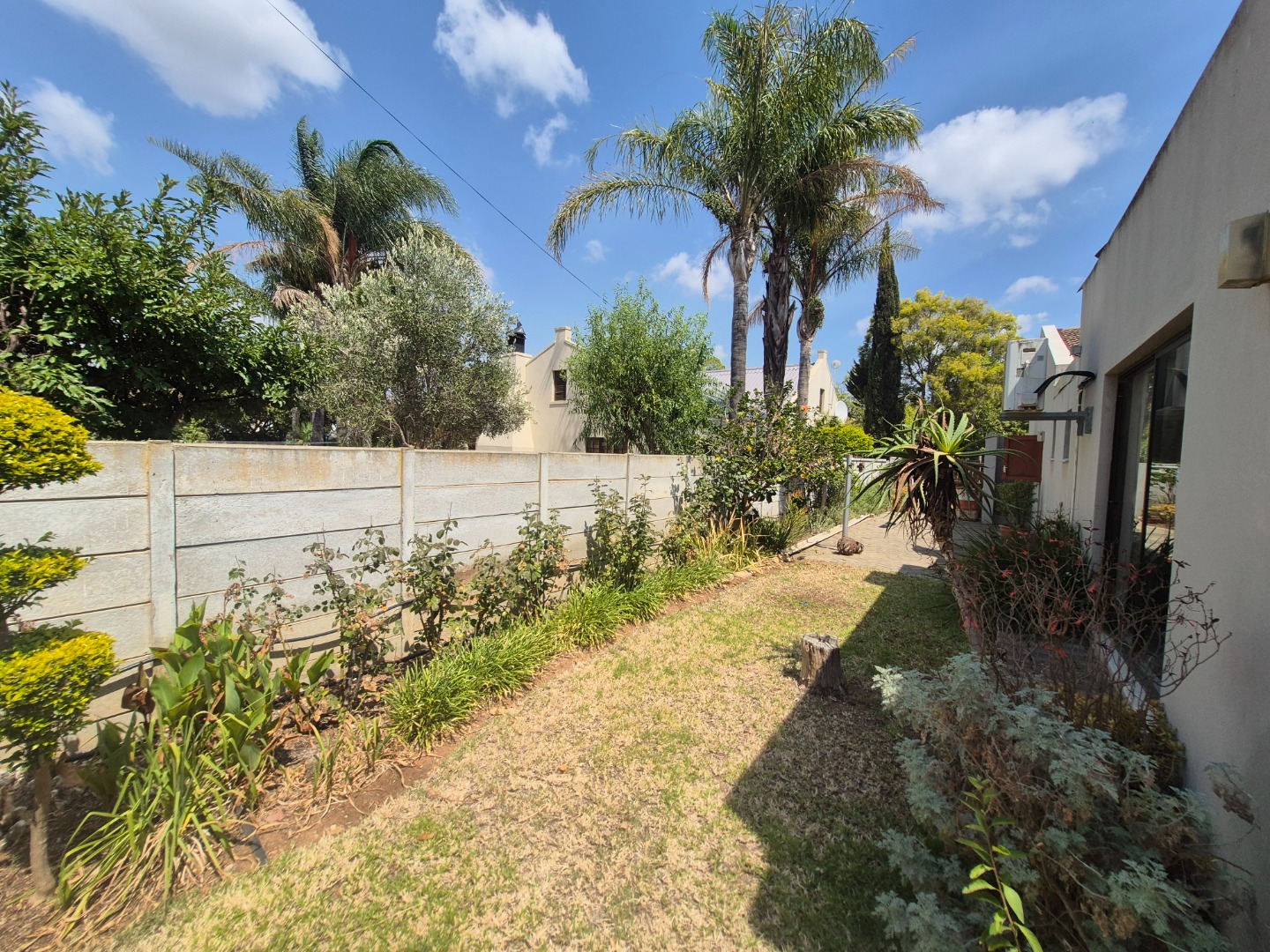 Outdoor living is well catered for with a private garden, creating a pleasant exterior space. The built-in braai is perfect for social gatherings and enjoying the South African climate. Parking is abundant, with a double garage and an additional four open parking spaces, accommodating multiple vehicles with ease.