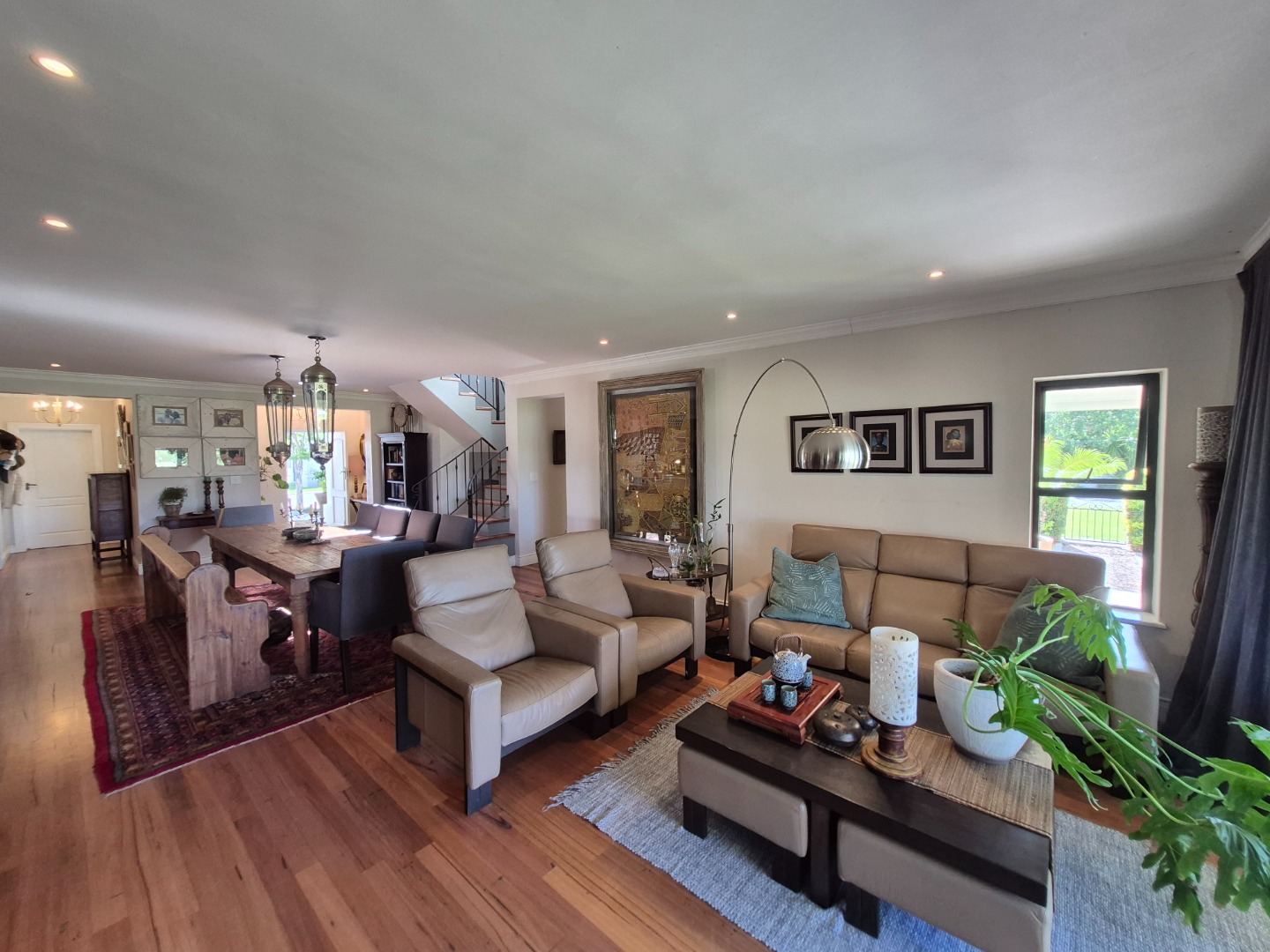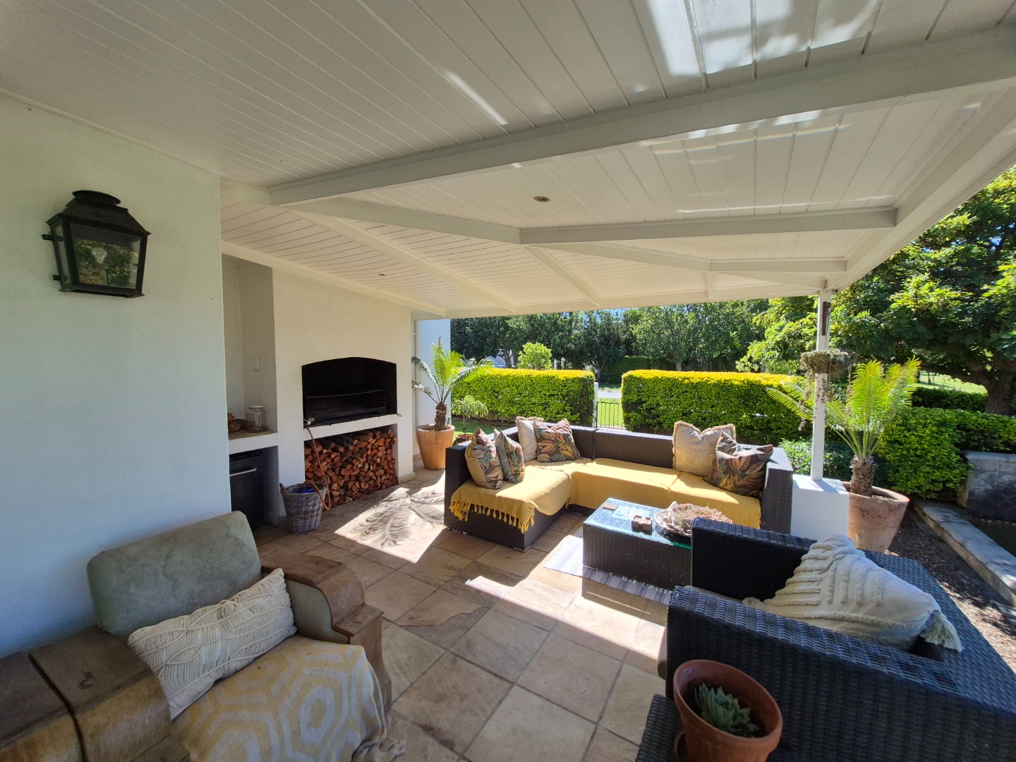 At the heart of the home, the living areas open out onto a generous covered veranda — a true extension of the home. Here, a built-in braai and multiple seating areas overlook the landscaped garden, sparkling pool and the rolling greens of the golf course. Whether hosting special occasions, evening braais, or simply enjoying the quiet beauty of the estate, this is a home designed for easy indoor-outdoor living throughout the seasons.