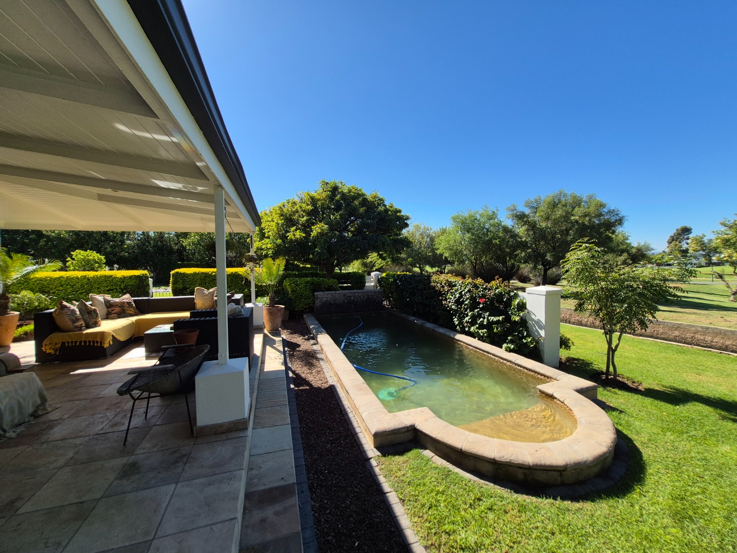 Perfectly positioned on a private corner stand along the 8th green of the prestigious Silwerstrand Golf Estate, this elegant double-storey home offers one of the most desirable settings on the course. With uninterrupted views across manicured fairways, the property captures the essence of estate living — peaceful, refined and beautifully connected to nature.